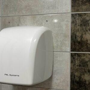 Dizajn ovog modela je suvremen i funkcionalan. Kućište je izrađeno od čvrste ABS plastike u bijeloj boji, što sušilu daje čisti, neutralni izgled koji se lako uklapa u različite interijere. ABS plastika je otporna na udarce i izdržljiva, pa uređaj može podnijeti svakodnevnu intenzivnu uporabu čak i u javnim prostorima. Istovremeno, plastično kućište doprinosi manjoj težini uređaja (oko 2,5–3 kg) što olakšava montažu na zid i smanjuje opterećenje zidne konstrukcije. Model je također dostupan u varijanti od nehrđajućeg čelika (brušeni inox) za one koji preferiraju metalno kućište i sivi finiš – obje verzije pružaju jednaku razinu performansi, pa korisnik može odabrati stil koji mu bolje odgovara.